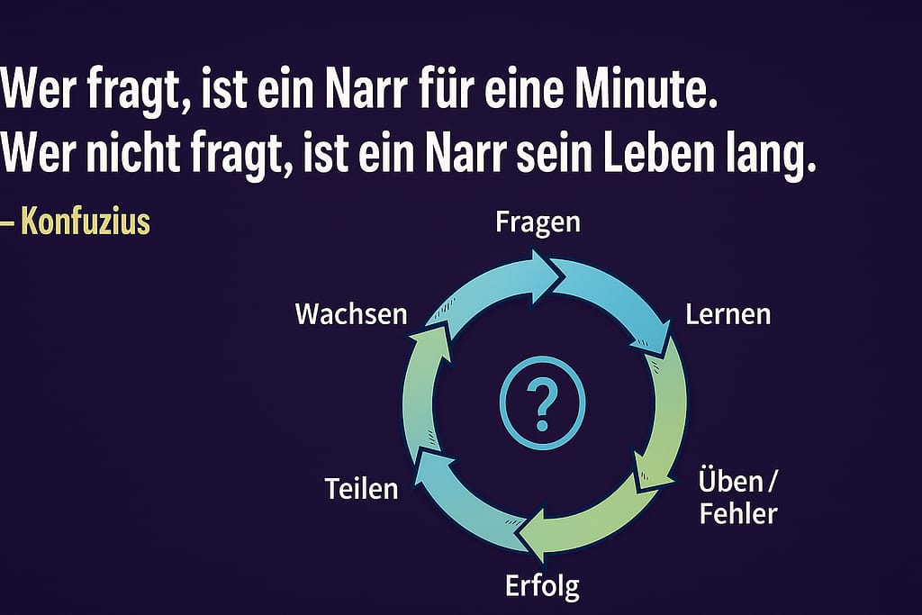 „Wer fragt, ist ein Narr für eine Minute. Wer nicht fragt, ist ein Narr sein Leben lang.“ – Diese Worte stammen von Konfuzius (551–479 v. Chr.), dem chinesischen Philosophen, Lehrer und Begründer des Konfuzianismus. Als Sohn einer verarmten Adelsfamilie im Staat Lu geboren, widmete er sein Leben der Bildung und gründete eine der ersten Schulen, die Wissen nicht nur einer Elite, sondern allen Wissbegierigen öffnete.[1][2][3] Konfuzius war überzeugt: Bildung ist kein einmaliger Akt, sondern ein lebenslanger Prozess der Selbstkultivierung. Er betrachtete Lernen nicht nur als intellektuelle Tätigkeit, sondern als moralische Praxis – als Weg zur Veredelung des Charakters. Dieses Zitat ist daher kein bloßer Spruch, sondern Ausdruck einer ganzen Lebensphilosophie.